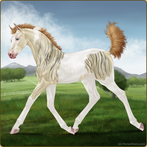 Color: Dunskin Pearl Tobiano Sabino Brindle