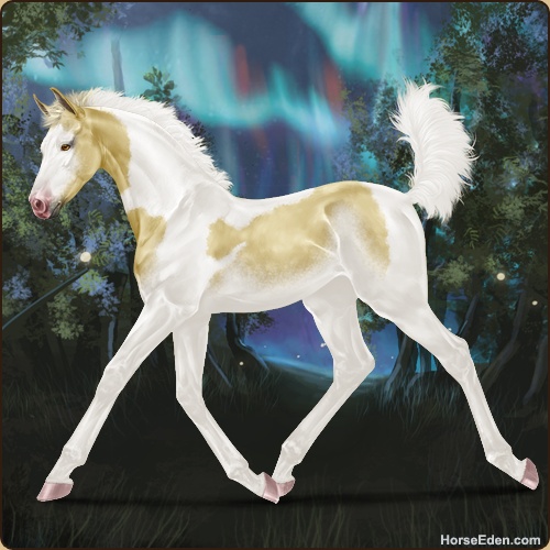 No GP, no A+... but dappled dunalino with a new splash coat that has a white tail. :D